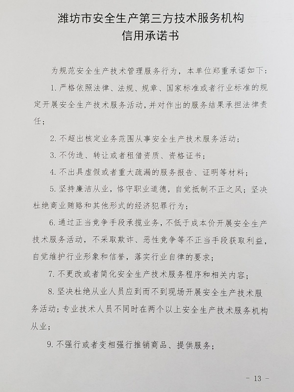 公司關(guān)于《濰坊市生產(chǎn)經(jīng)營單位安全生產(chǎn)信用承諾制度》的公示