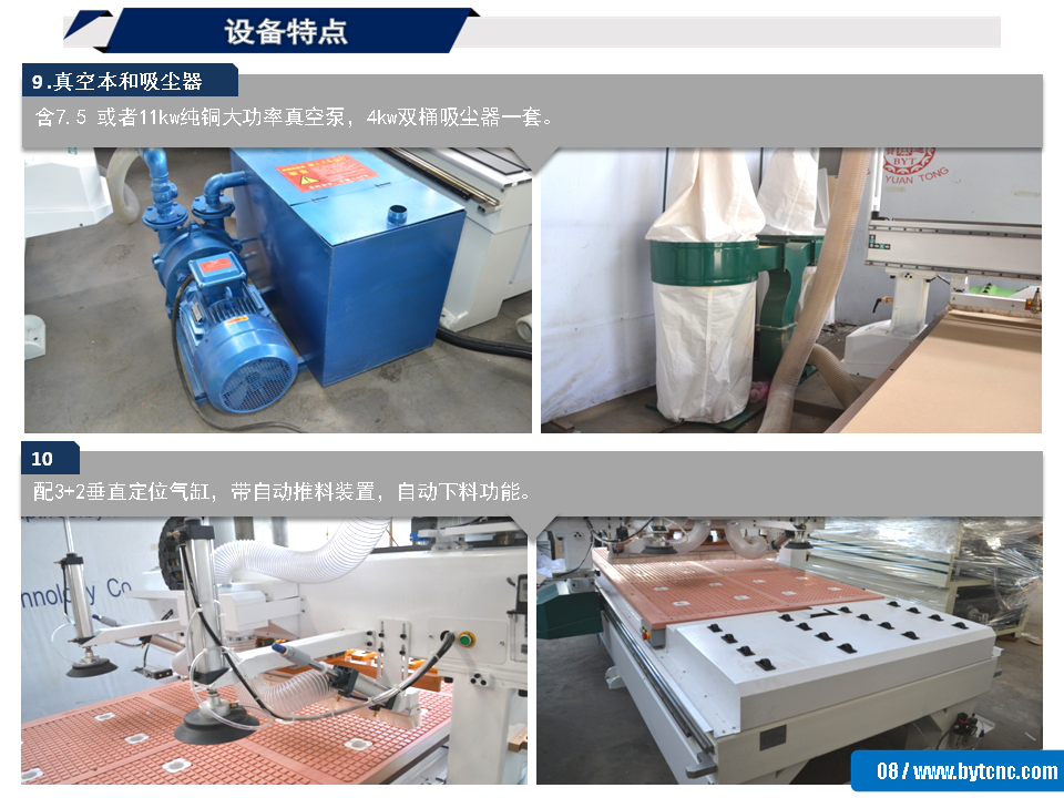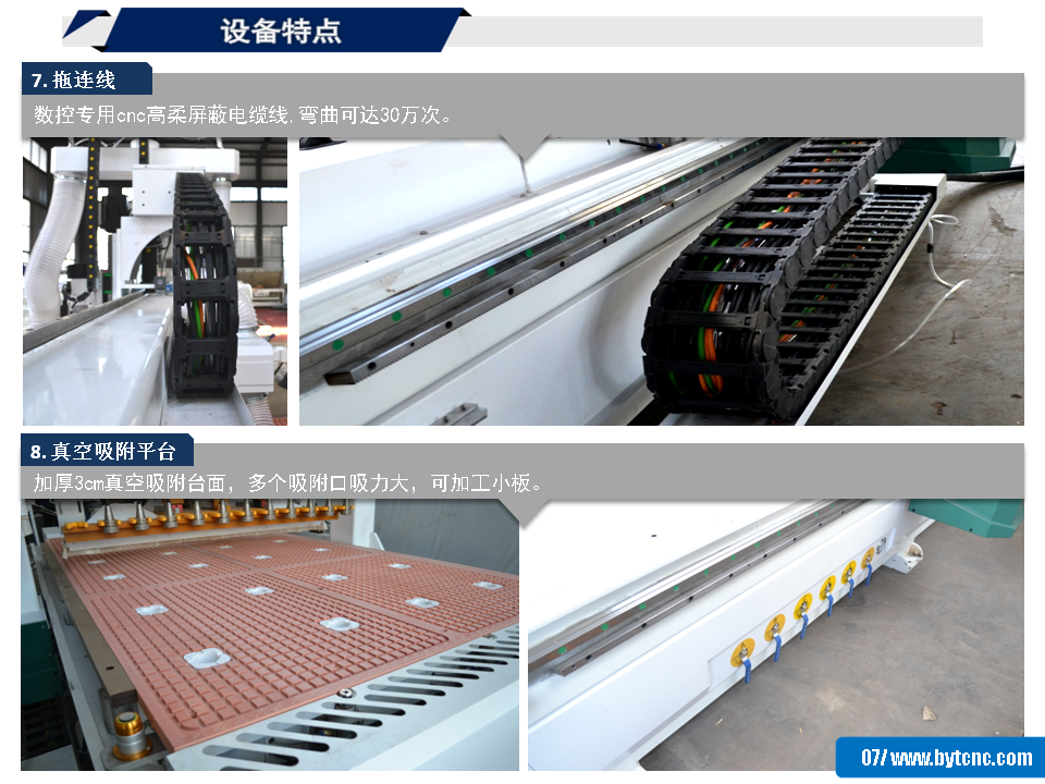 8. 真空吸附平臺:加厚3cm真空吸附臺面,多個吸附口吸力大,可加工小板。