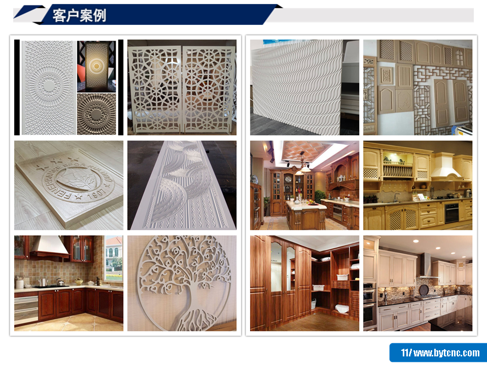 裝飾行業:該機可用于木工藝術模型、墻面藝術、絲網浮雕雕刻切割、裝飾加工、禮品包裝、波紋板、電器柜面板、運動器材等木質工業產品。