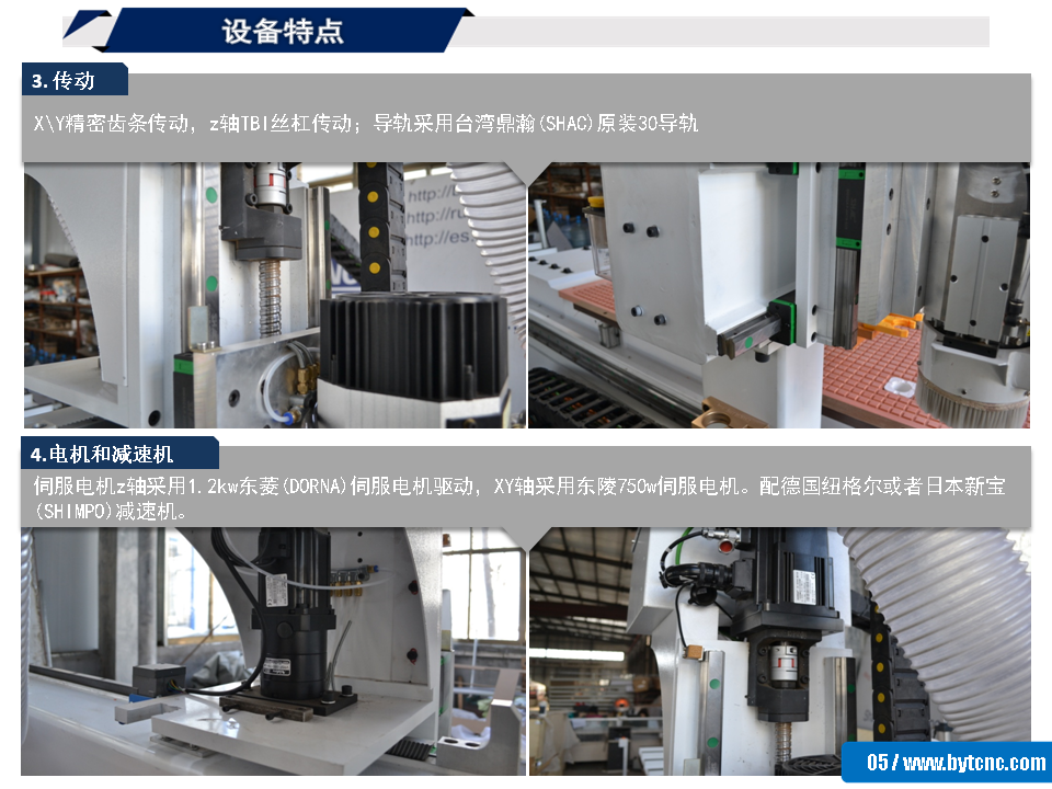 3. 傳動: X\Y精密齒條傳動,z軸TBI絲杠傳動;導軌采用臺灣鼎瀚(SHAC)原裝30導軌