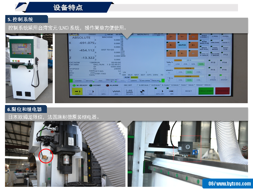 6. 限位和繼電器:日本歐姆龍限位,法國施耐德原裝繼電器。