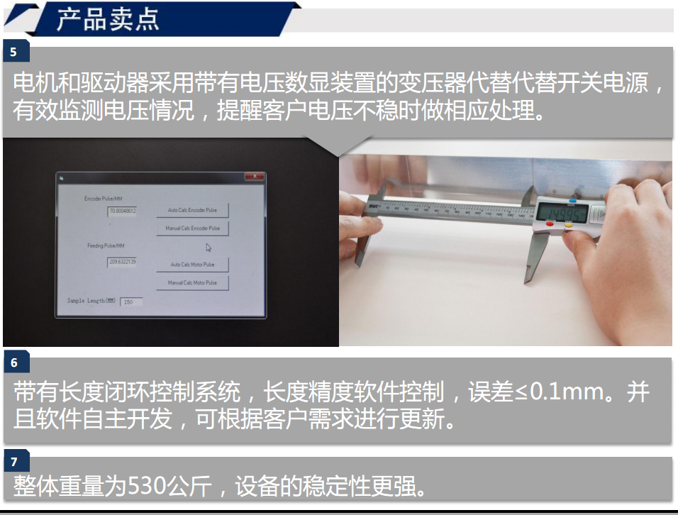 6.帶有長度閉環控制系統,長度精度軟件控制,誤差≤0.1mm。并且軟件自主開發,可根據客戶需求進行更新。